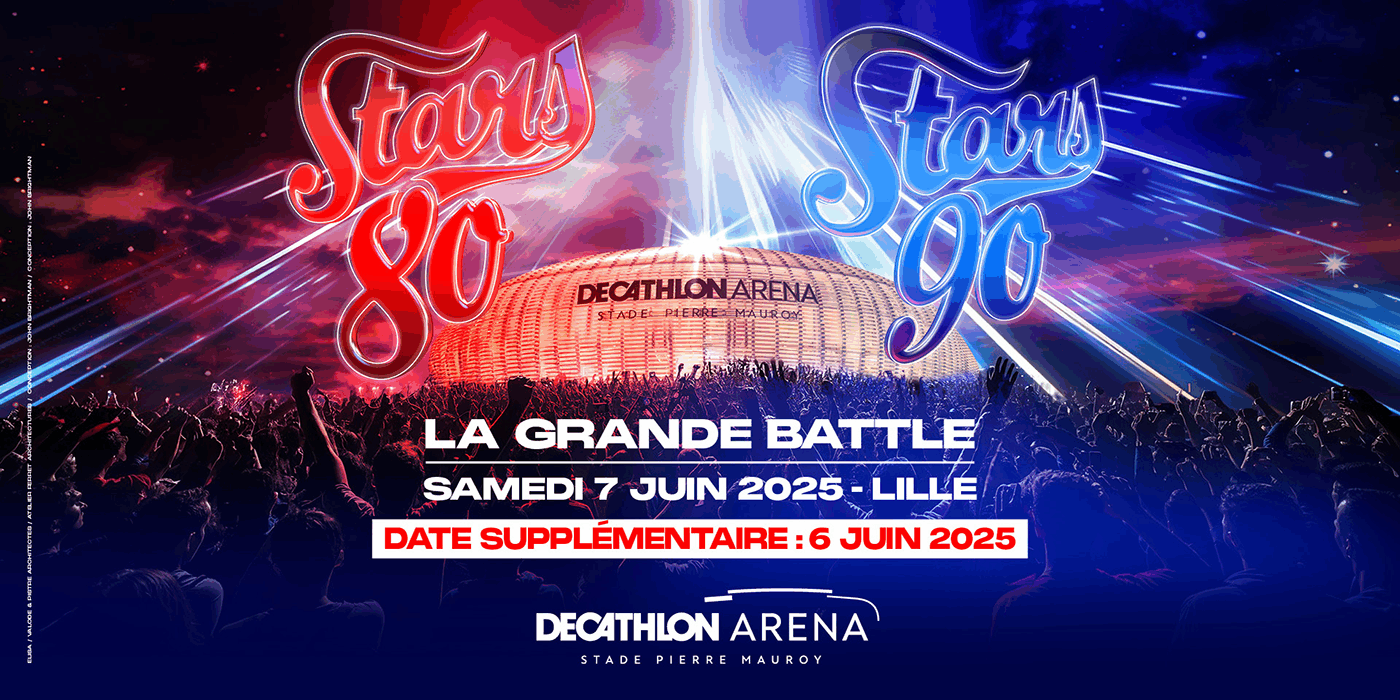 Les 6 et 7 juin 2025 à la Decathlon Arena – Stade Pierre-Mauroy de Lille aura lieu “La Grande Battle Stars 80 / Stars 90” : une immersion musicale unique où deux décennies légendaires s’affronteront dans un show spectaculaire !